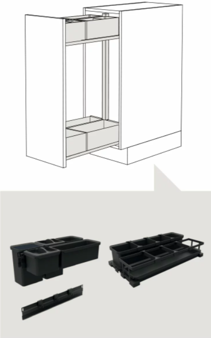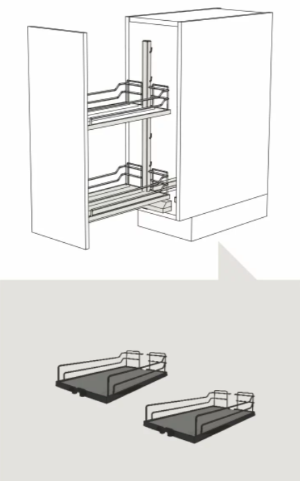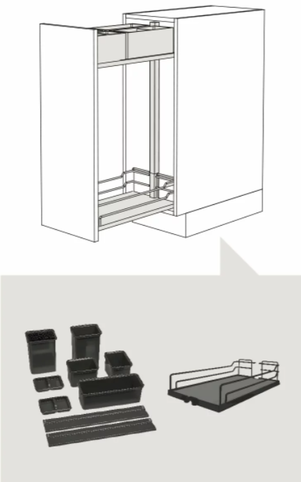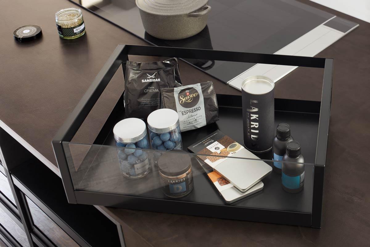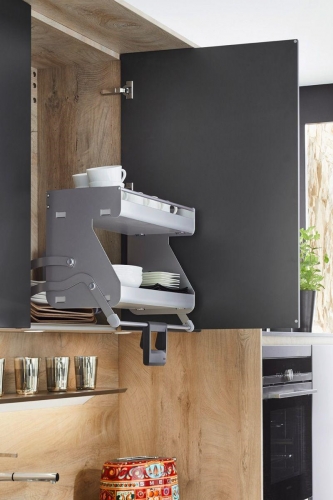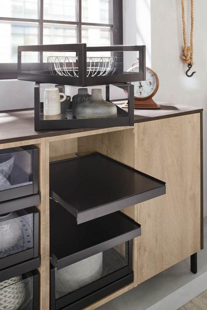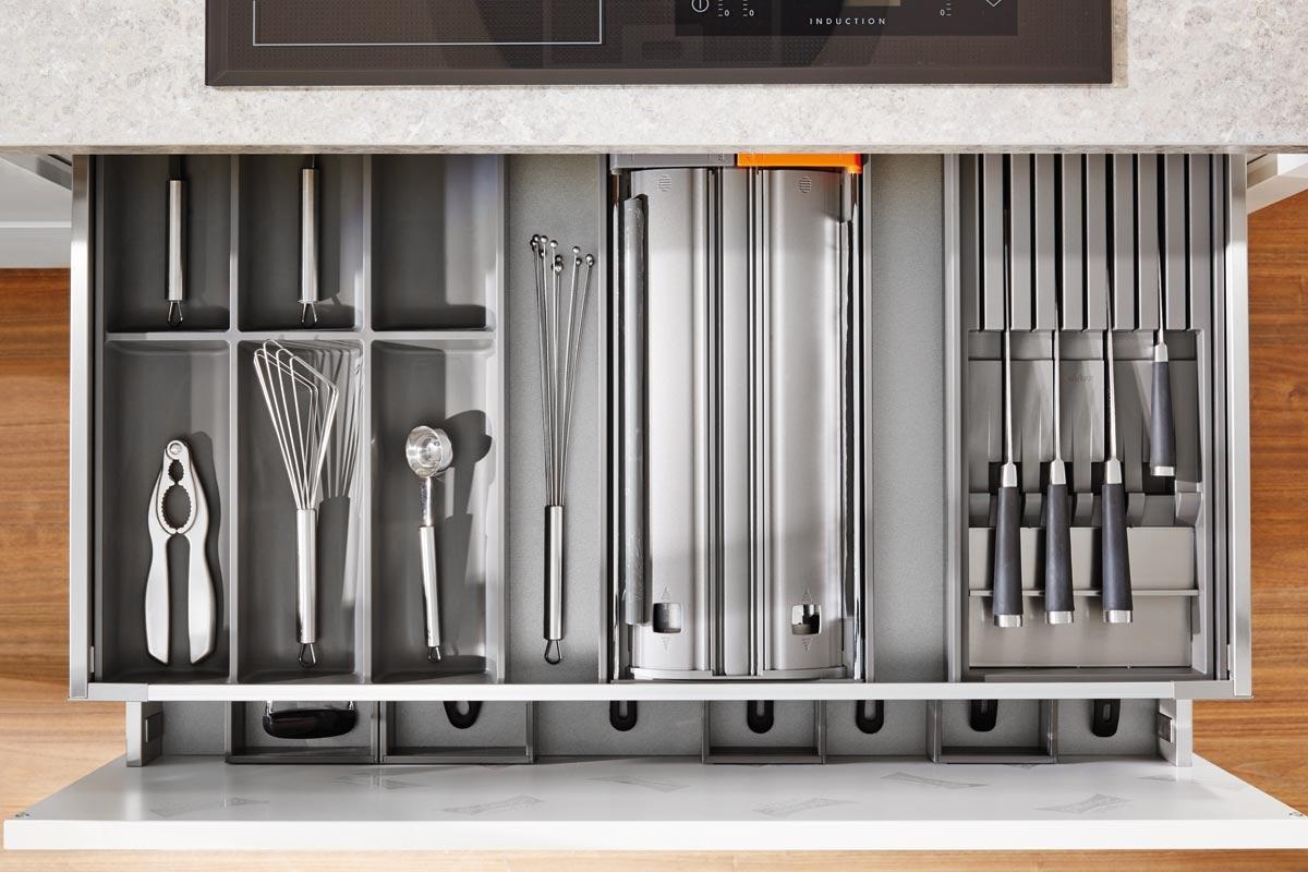 Auszugsysteme vereinfacht und bietet die Möglichkeit, den Raum in den Schubladen so gut wie möglich zu organisieren, dank seines Systems selbst, das eine Note von Leichtigkeit und Praktikabilität in der Küche bietet.